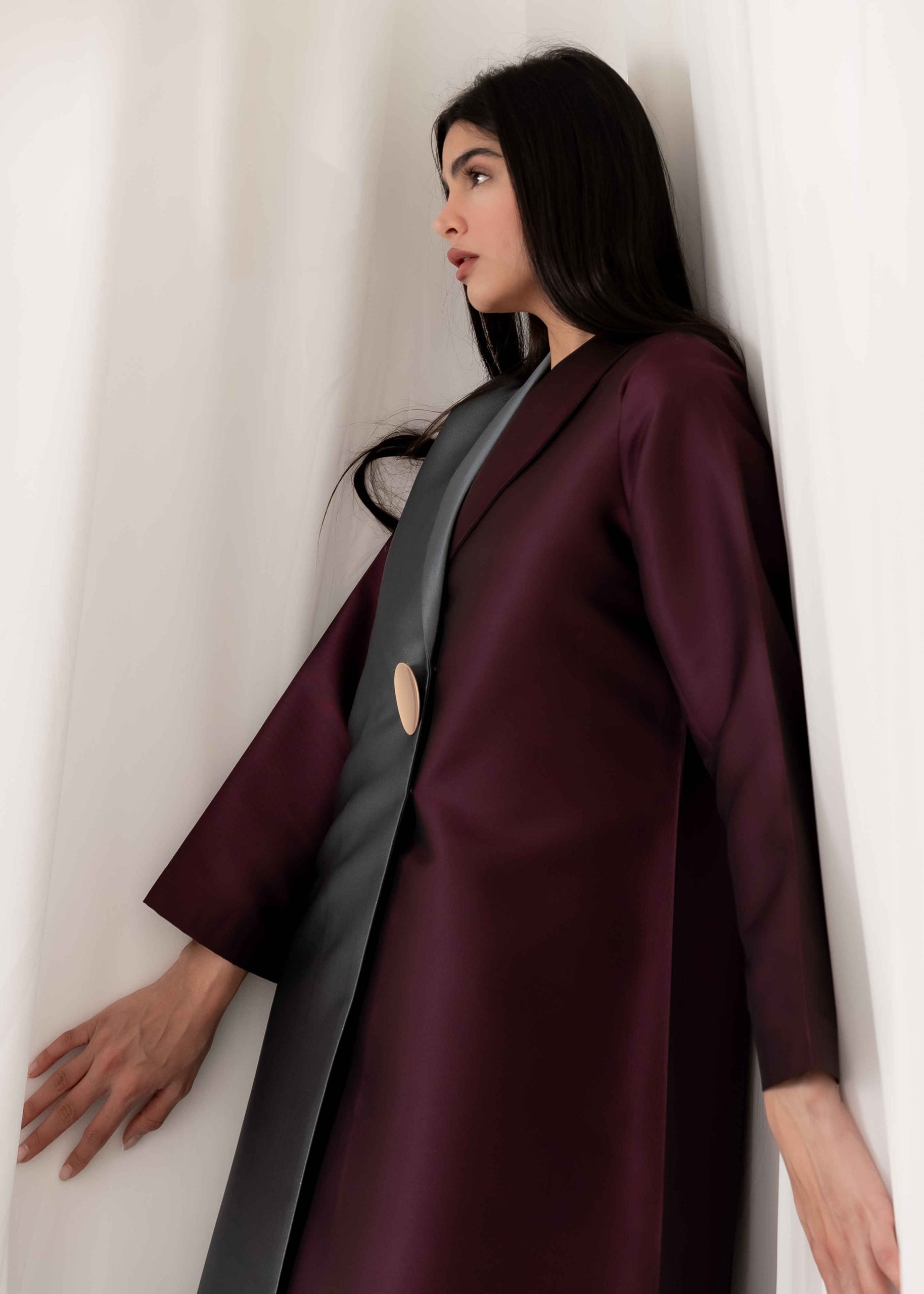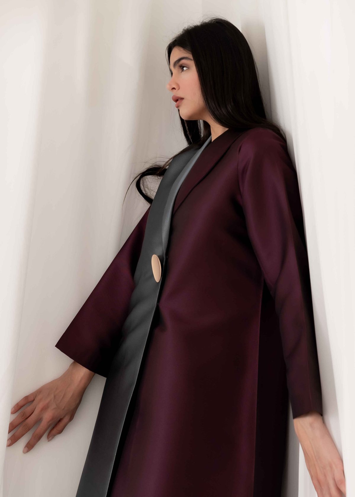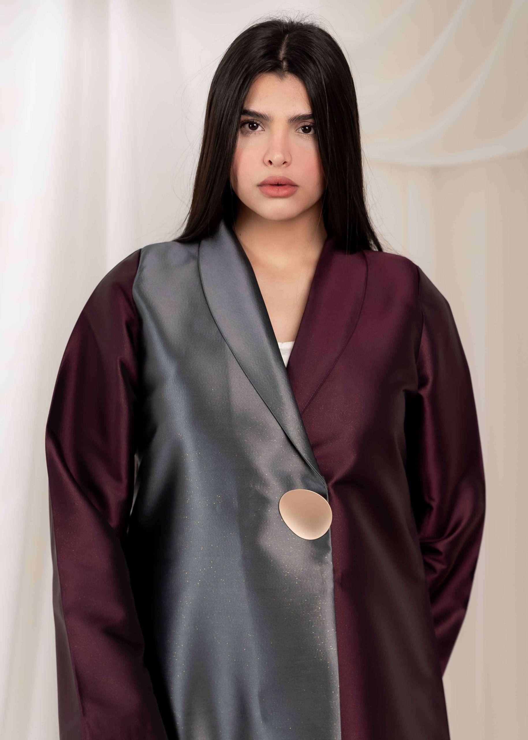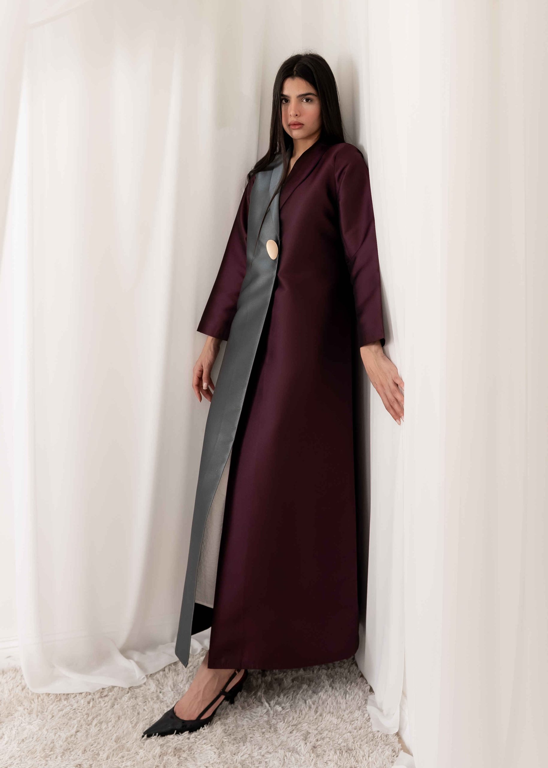 The design balances minimalism and luxury, allowing the fabric itself to take center stage. Its clean lines and well-structured silhouette give the abaya a royal and graceful feel without being overstated. Every detail is carefully considered to maintain a polished and elegant appearance.