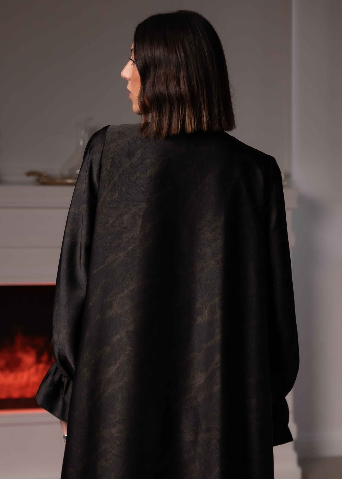 High-quality fabric and precise tailoring ensure a smooth drape and a graceful flow with every movement. The sleeves are softly structured, adding a dramatic yet elegant touch inspired by classic opera costumes, while remaining comfortable and wearable.